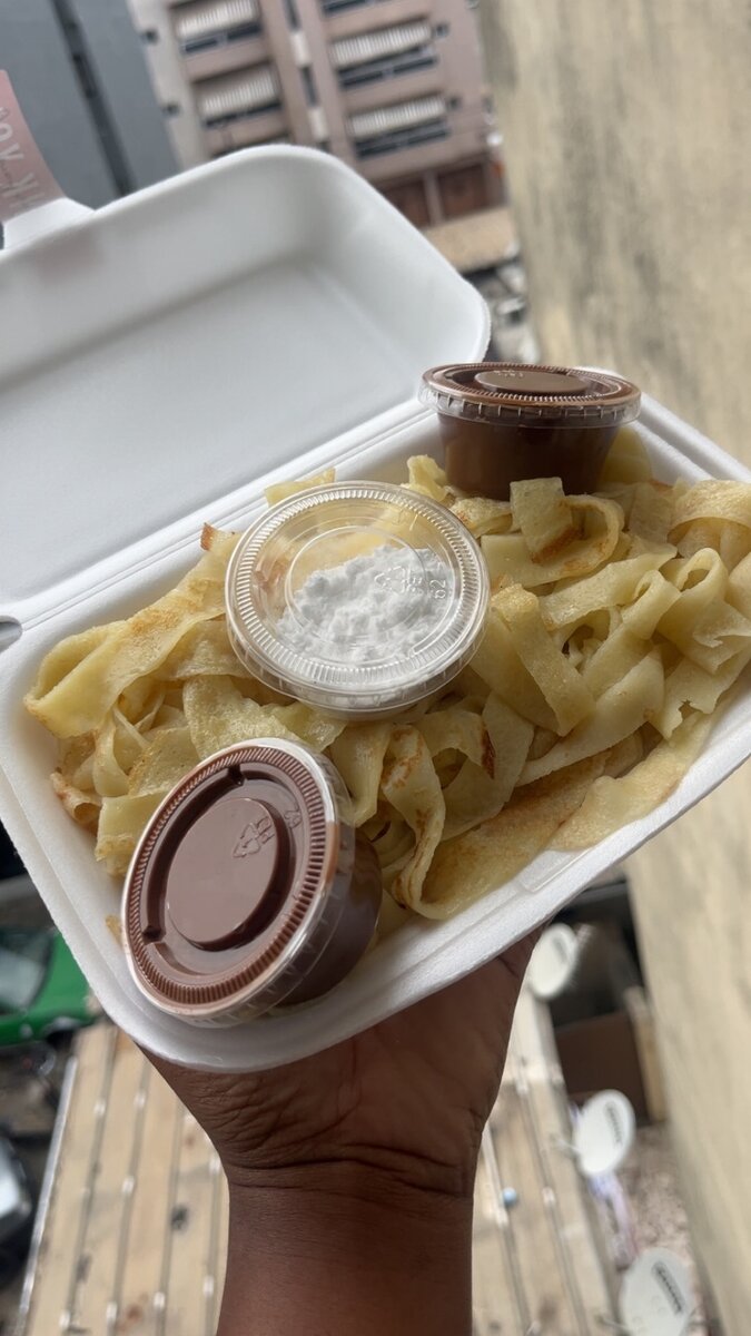 Découvrez nos crêpes au chocolat, délicatement garnies et prêtes à emporter. Idéales pour une pause sucrée ou un dessert savoureux, elles sont accompagnées d'une sauce chocolat onctueuse. Parfaites pour les gourmands !