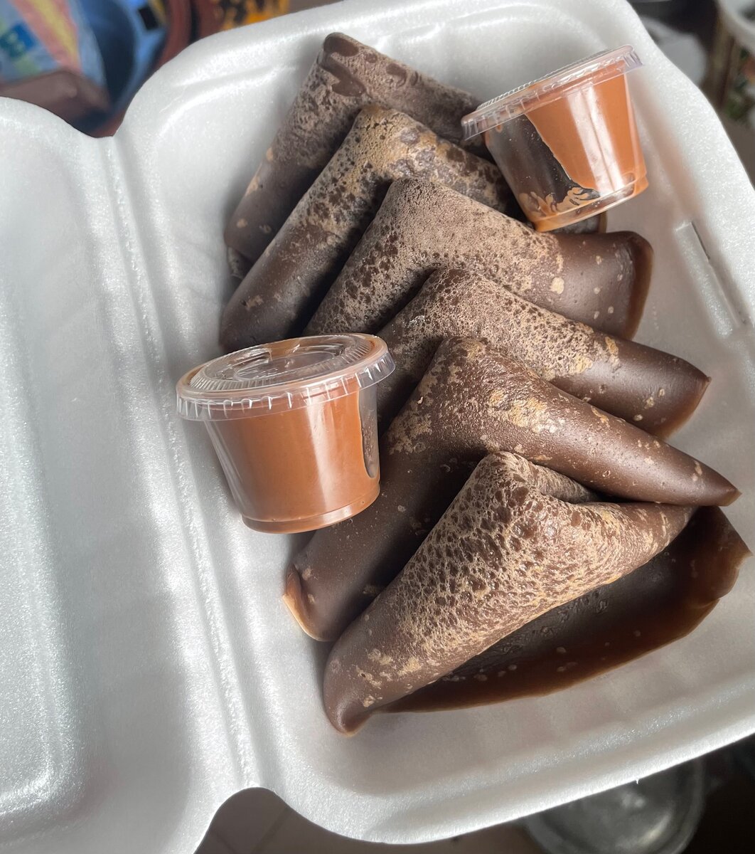 Découvrez nos crêpes au chocolat gourmandes, un délice irrésistible pour les amateurs de sucreries! Parfaites pour un dessert ou une collation, elles séduisent par leur texture moelleuse et leur saveur riche. Servies avec sauce chocolat pour un plaisir maximum. Idéales pour partager entre amis ou pour se faire plaisir en solo. Convient à toutes les occasions spéciales!