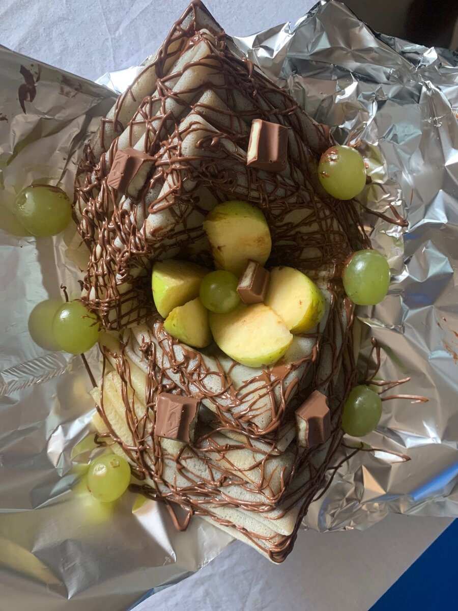 Savourez nos crêpes gourmandes, délicatement enroulées avec du chocolat fondant, des morceaux de pommes fraîches et des raisins sucrés. Parfaites pour un dessert raffiné ou un brunch accueillant. Idéales pour surprendre vos invités avec une touche d'élégance culinaire. Un délice irrésistible pour les passionnés de douceurs!