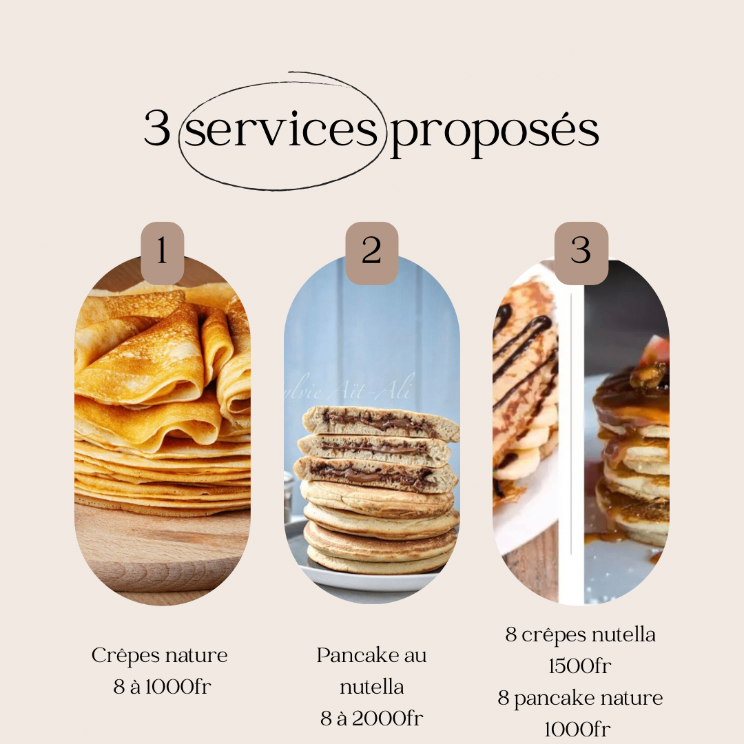 Découvrez nos délicieuses crêpes nature et pancakes au Nutella, parfaites pour vos petits-déjeuners gourmands ou desserts sucrés. Savourez des textures moelleuses et des saveurs irrésistibles à partager en famille ou entre amis.