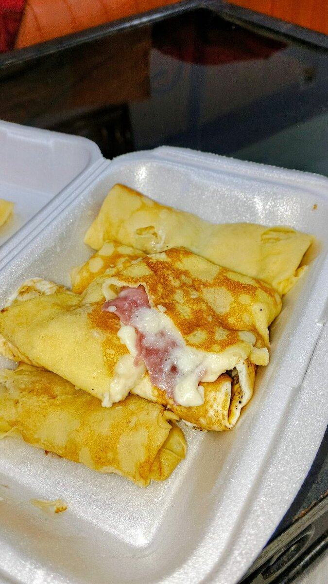 Dégustez nos délicieuses crêpes fourrées au jambon et fromage au cœur fondant à partager entre amis ou en famille