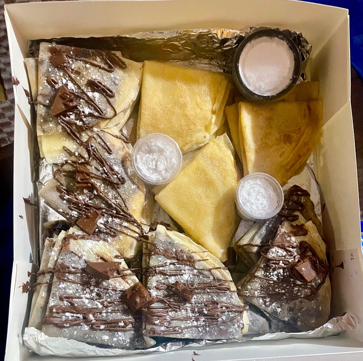 crêpes au Nutella, parfaites pour un dessert gourmand ou un goûter entre amis. Recouvertes d'une généreuse couche de chocolat et accompagnées d'une sauce crémeuse, ces crêpes sont un régal pour les papilles. Idéal pour les amateurs de douceurs sucrées.