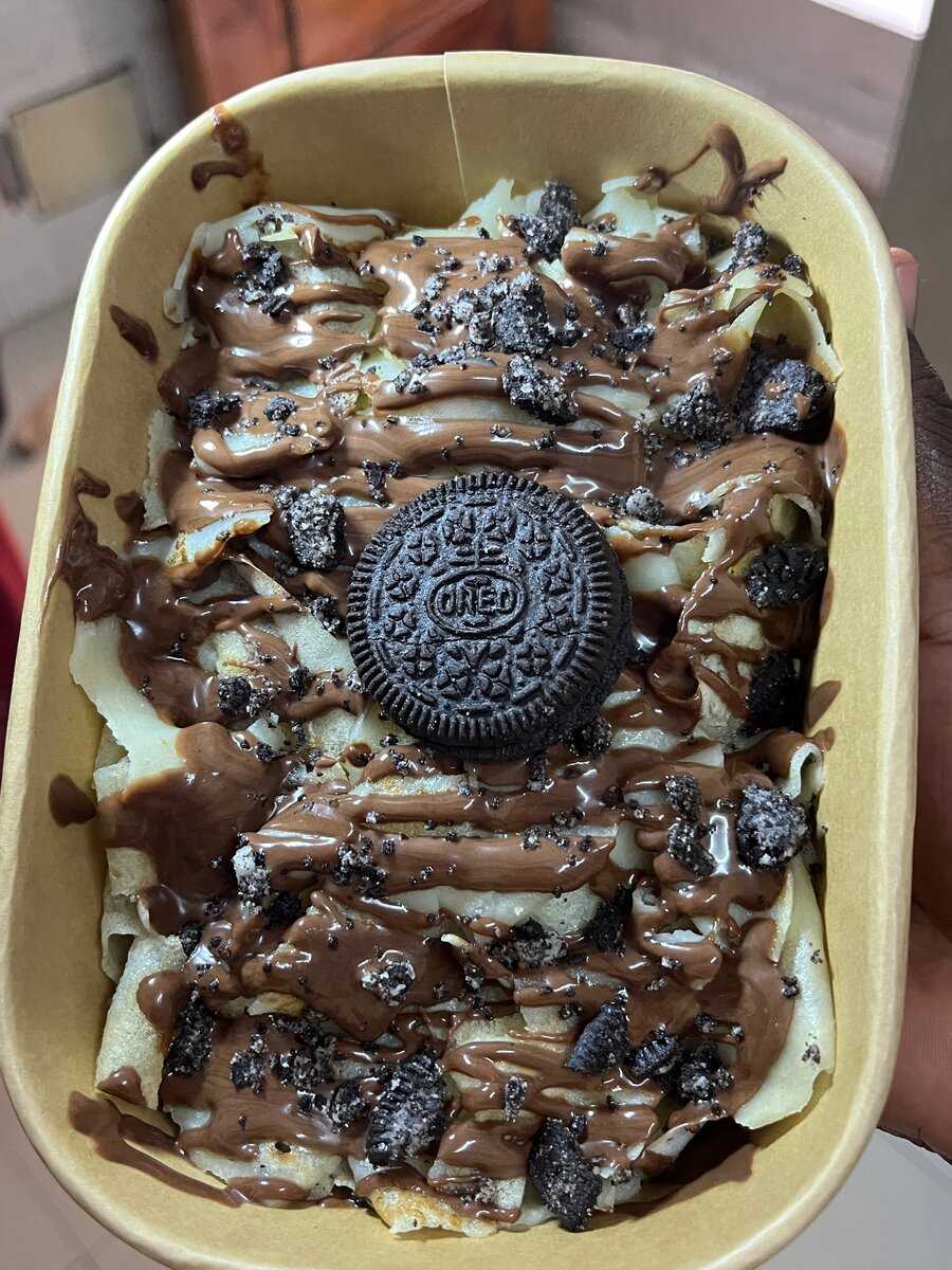 Savourez une délicieuse glace roulée parfumée au chocolat et Oreo. Parfait pour les gourmands à la recherche d'une douceur unique aux éclats de biscuits. Idéal en dessert ou en snack gourmand.