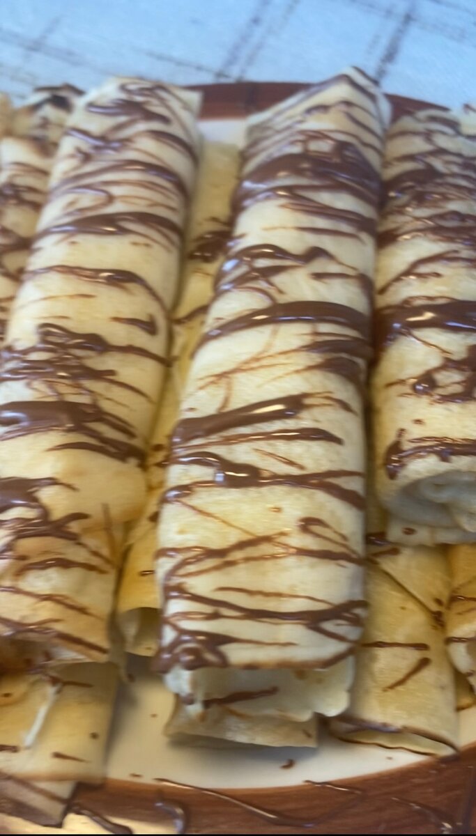 Délicieuses crêpes roulées, nappées de chocolat fondant. Parfaites pour un dessert gourmand ou un brunch réussi. Ajoutez vos garnitures préférées pour une expérience unique!