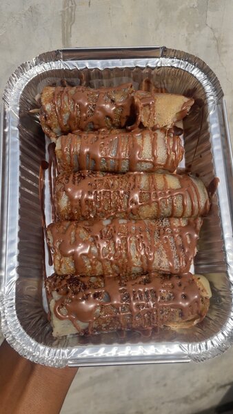 Découvrez nos crêpes roulées généreusement napées de chocolat.