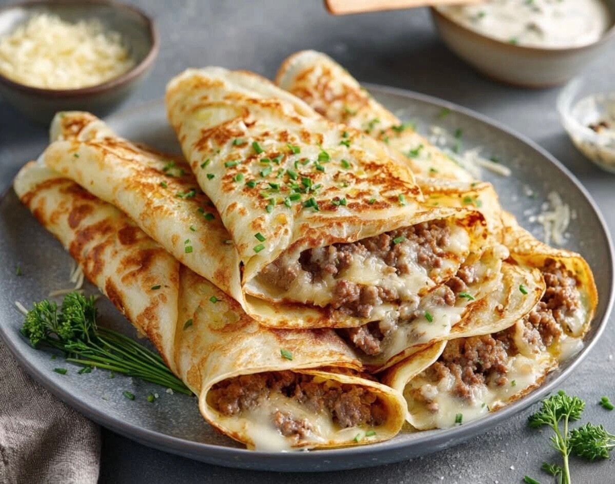 Savourez ces crêpes salées au cœur généreux de viande et fromage fondu. Parfaites pour un repas convivial en famille ou entre amis, elles offrent une combinaison délicieuse de textures et de saveurs. Laissez-vous tenter par ce délice réconfortant et facile à préparer qui ravira vos papilles.
