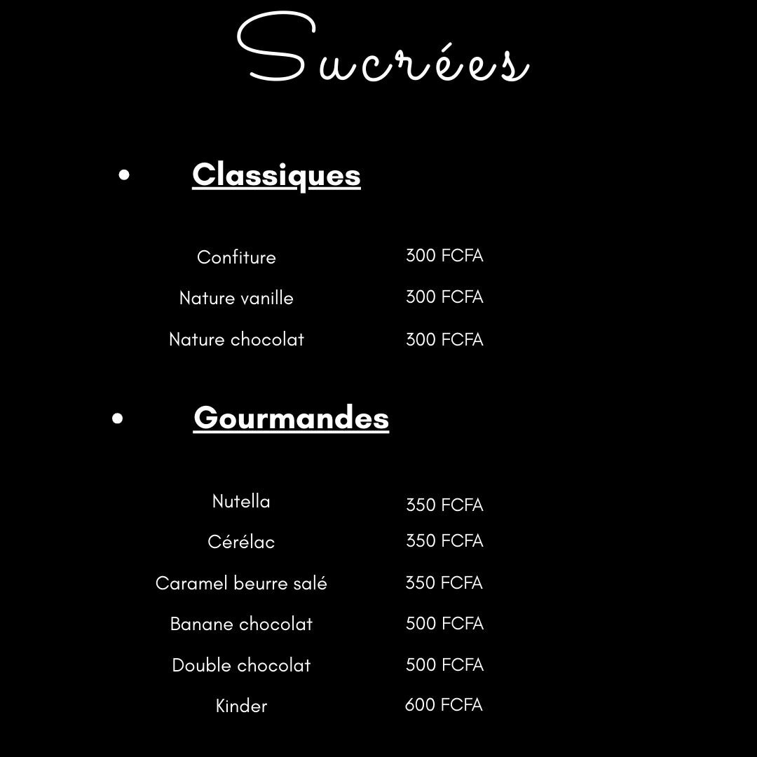 Crêpes Sucrées Fines, moelleuses et généreusement garnies, nos crêpes sucrées sont un pur moment de bonheur. Chocolat, caramel, fruits ou confiture, elles fondent en bouche à chaque bouchée. Parfaites pour vos pauses gourmandes !