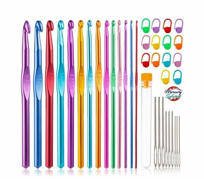 Ensemble idéal pour la couture et le crochet, comprenant des crochets colorés en aluminium, des aiguilles et des marqueurs à tricoter. Parfait pour les amateurs de DIY et de travaux manuels. Léger et facile à utiliser, il s'adapte à tout projet de tricotage. Cadeau parfait pour les débutants et les experts.