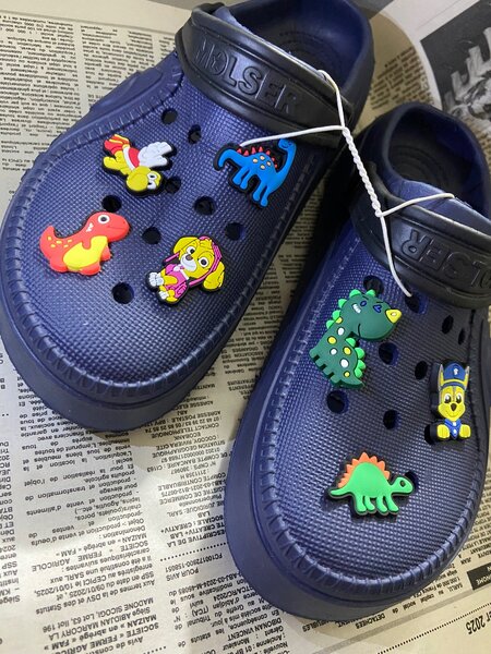 Découvrez ces Crocs noires avec des décorations amusantes. Parfait pour ajouter une touche de personnalité à vos chaussures. Confortables et idéales pour toutes les occasions.
