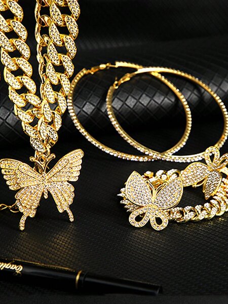 Collier et Boucles Papillon Doré