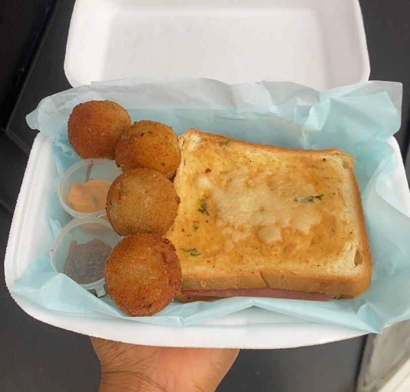 Savourez ce délicieux sandwich grillé accompagné de boulettes croustillantes et de sauces variées pour une pause gourmande parfaite. Idéal pour un déjeuner rapide ou un encas savoureux à tout moment.