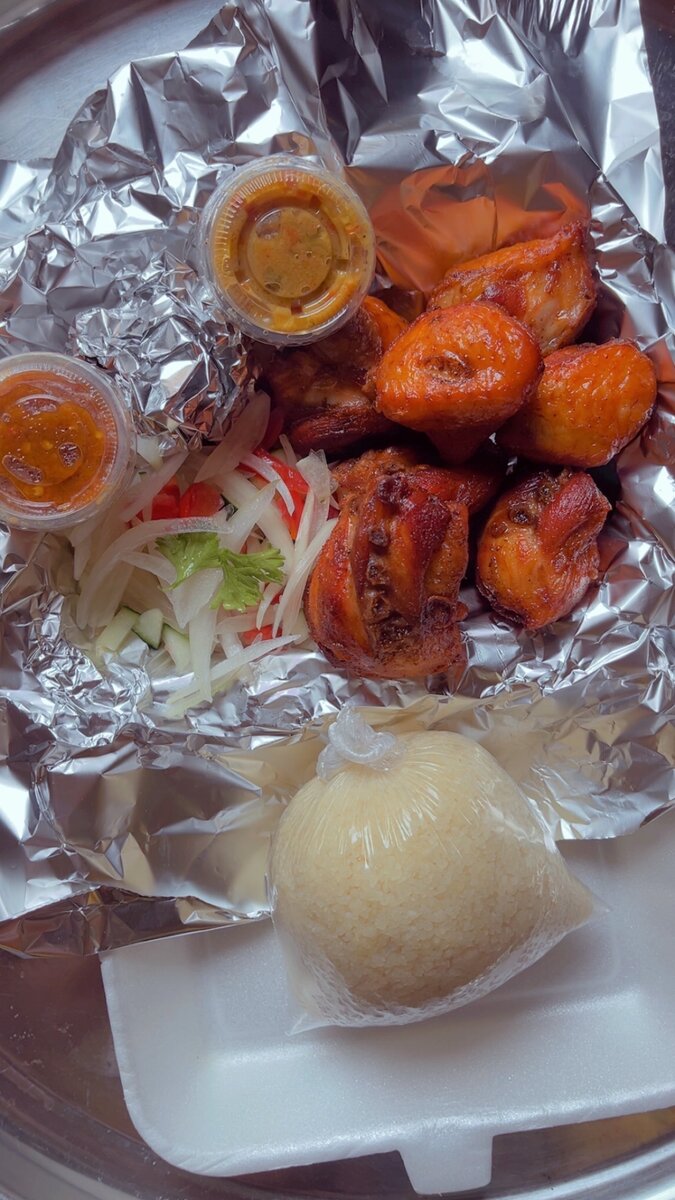Savourez un délicieux croupion accompagné de sauces piquantes et d'oignons frais.
