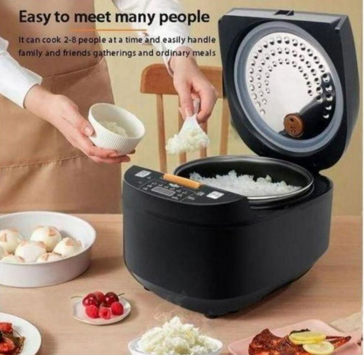 Découvrez le cuiseur à riz multifonction idéal pour des repas familiaux réussis. Capacité de 2 à 8 personnes, parfait pour rassembler vos proches. Préparez facilement du riz et bien plus encore grâce à ses fonctionnalités avancées. Un indispensable pour votre cuisine !