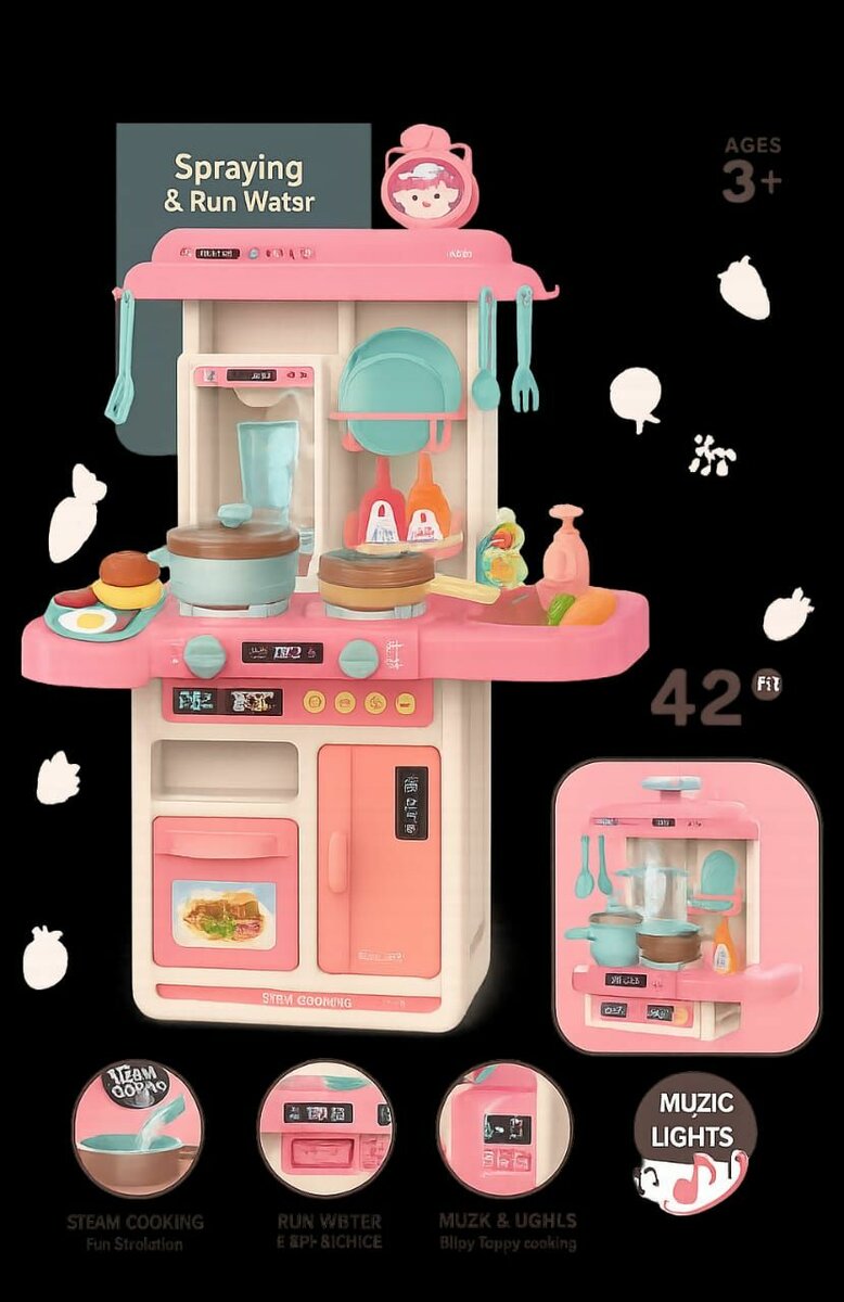 Découvrez cette cuisine jouet pour enfants avec effets sonores et lumineux, idéale pour stimuler leur imagination. Inclut fonctions de cuisson vapeur et robinet fonctionnel pour plus de réalisme. Parfait pour les enfants de 3 ans et plus.