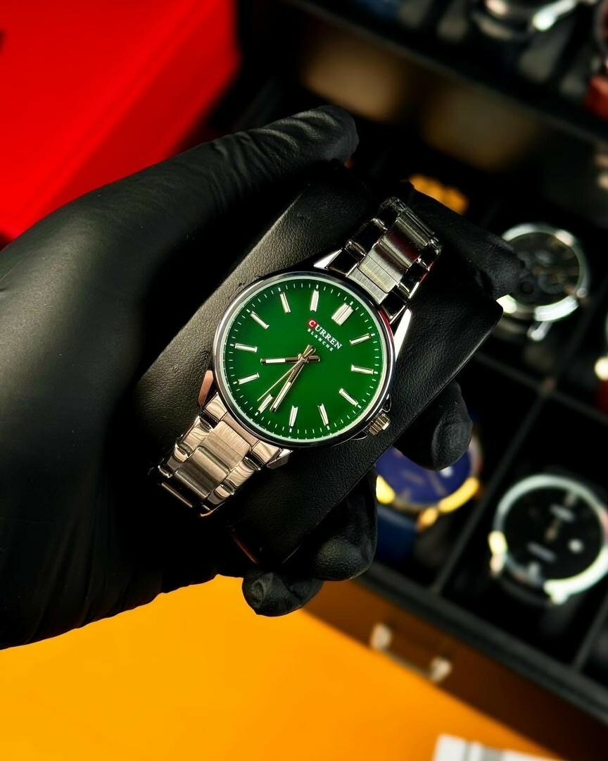 Montre-bracelet Curren chrome avec cadran vert foncé