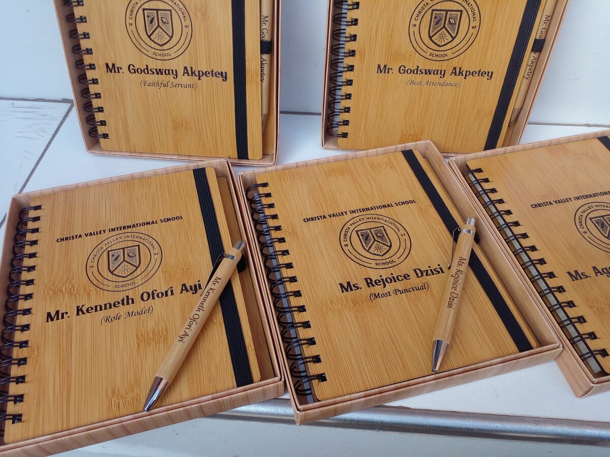 Bamboo diary with pen customised with any picture or message of your choice. It comes in a case