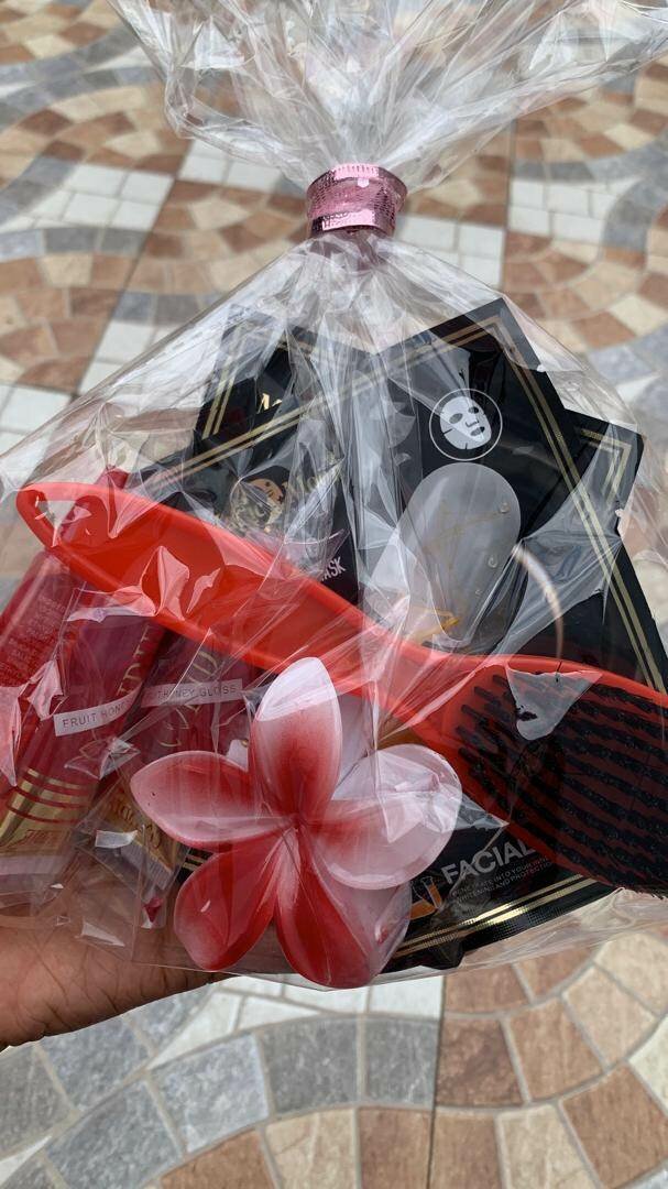Une petite dose de douceur et de glow dans un mini kit girly à souhait. Il contient : 2 masques de visage 1 brosse de cheveux 1 pince de cheveux 3 gloss Prix : 4 000 FCFA