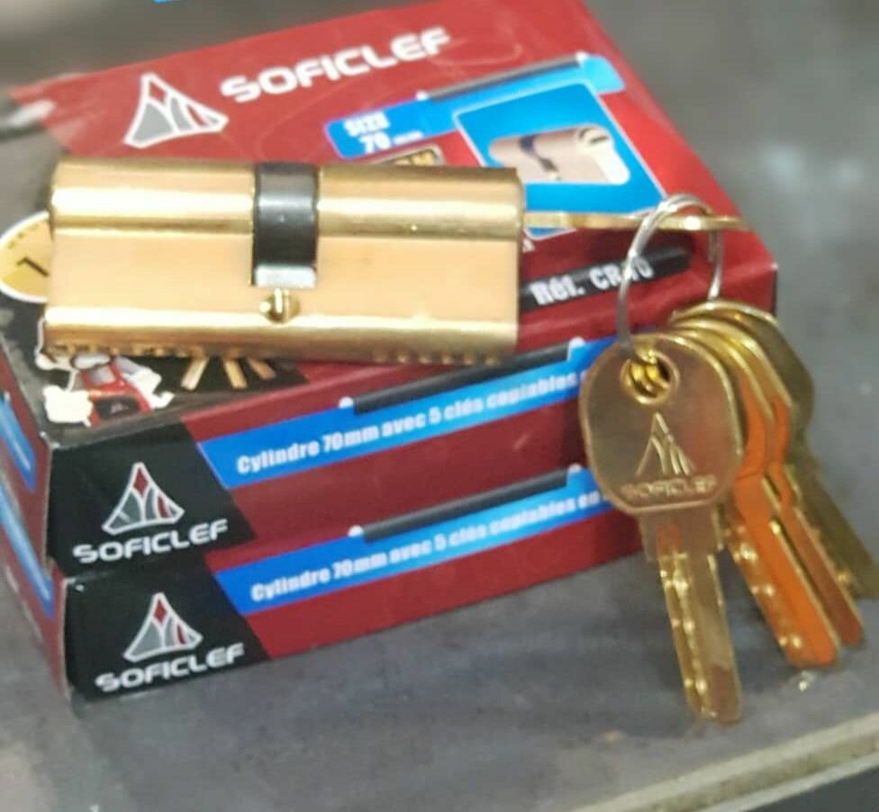 Cylindre de serrure robuste de 70mm avec 5 clés. Idéal pour sécuriser votre maison ou bureau. Fabriqué en matériaux durables pour une protection optimale. Installation facile pour une utilisation sans souci.
