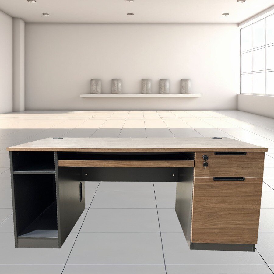 Taille: 120x60x75cm / 140x70x75cm Surface mélaminé Epaisseur 25mm Trois (3) Tiroirs avec clé Deux (2) sorties câbles avec bouchon