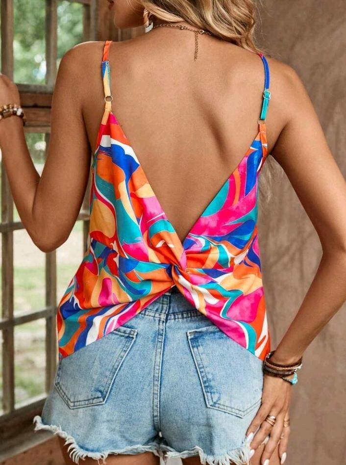 Adoptez un style estival avec ce débardeur coloré pour femme au design éclatant. Conçu avec une coupe dos plongeant et un nœud élégant, il offre à la fois confort et élégance. Idéal pour les sorties estivales, ce haut ajoute une touche vive et chic à votre garde-robe. Parfait pour les journées chaudes et les vacances au bord de la mer.