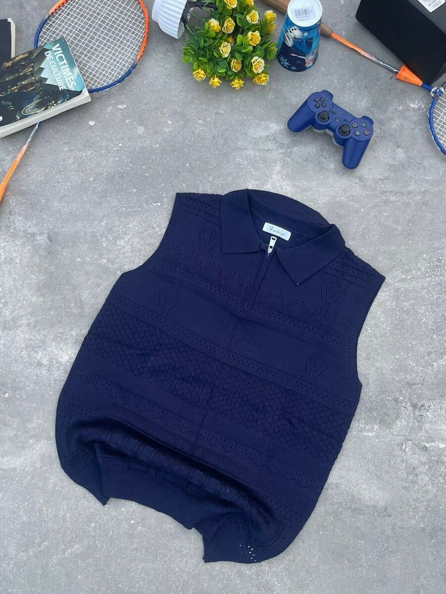 Ce débardeur élégant en dentelle bleu marine est idéal pour les soirées d'été ou en superposition avec un blazer. Son design sans manches offre confort et style, parfait pour une allure chic et décontractée. Fabriqué avec des matériaux de qualité, il assure une tenue parfaite et durable. Un ajout incontournable à votre garde-robe.