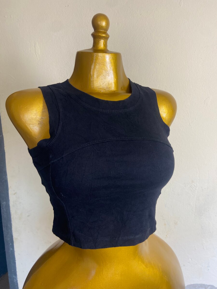 Débardeur noir chic, idéal pour un look décontracté ou sport. Doux et confortable, parfait pour l'été ou sous une veste. Complétez votre tenue avec style.