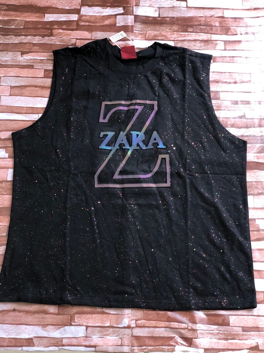 Éblouissez votre style avec ce débardeur noir Zara orné de scintillements. Parfait pour une soirée ou un look décontracté mais tendance, ce haut sans manches assure confort et élégance. Sa couleur sombre rehaussée par des détails brillants en fait un choix idéal pour les fashionistas.