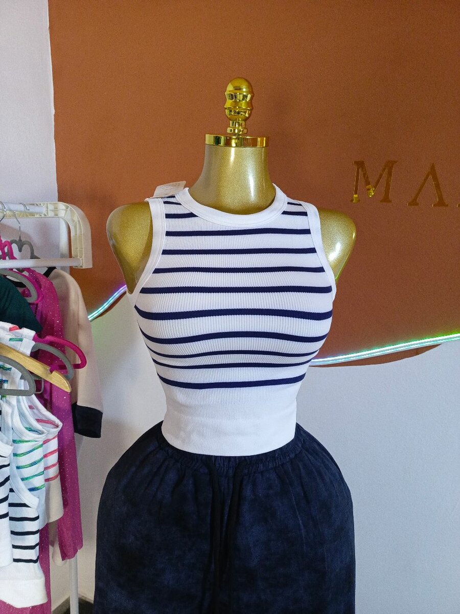 Ce débardeur rayé pour femme est parfait pour l'été grâce à son design respirant et léger. Fabriqué avec des matériaux confortables, il se marie bien avec des jupes ou des shorts pour un look décontracté. Idéal pour les sorties décontractées, les pique-niques ou simplement se détendre à la maison.