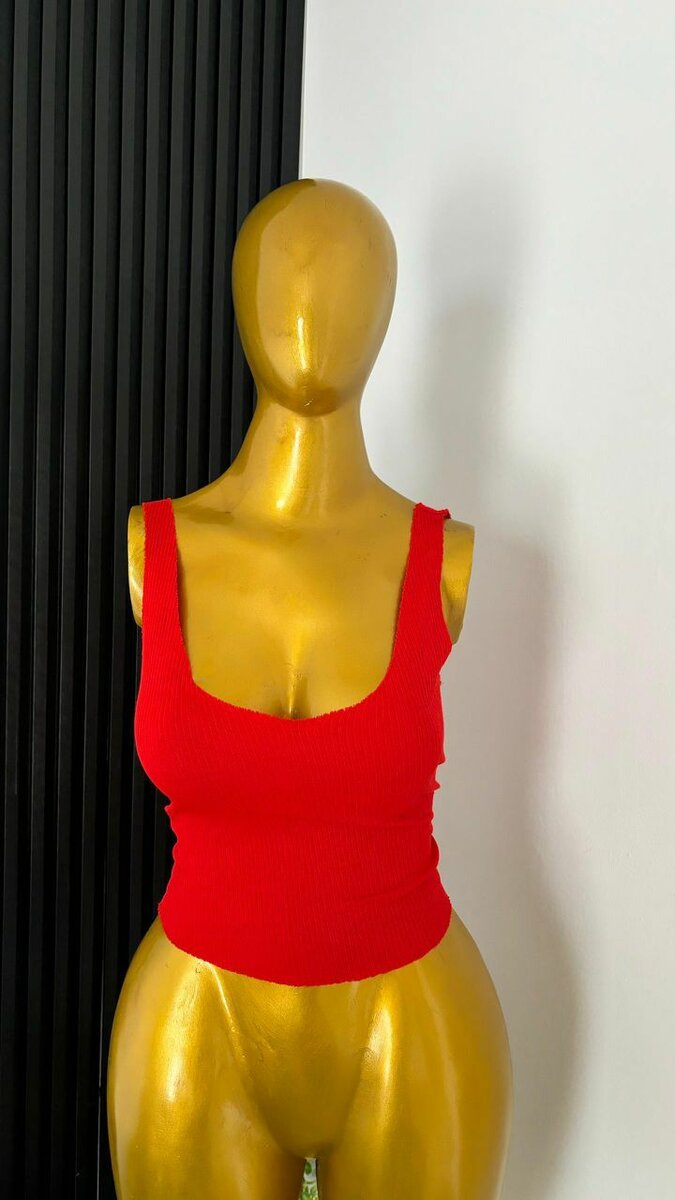 Élégant débardeur rouge sans manches en tissu doux et extensible. Parfait pour un look décontracté ou habillé. Idéal pour le quotidien ou les soirées d'été.