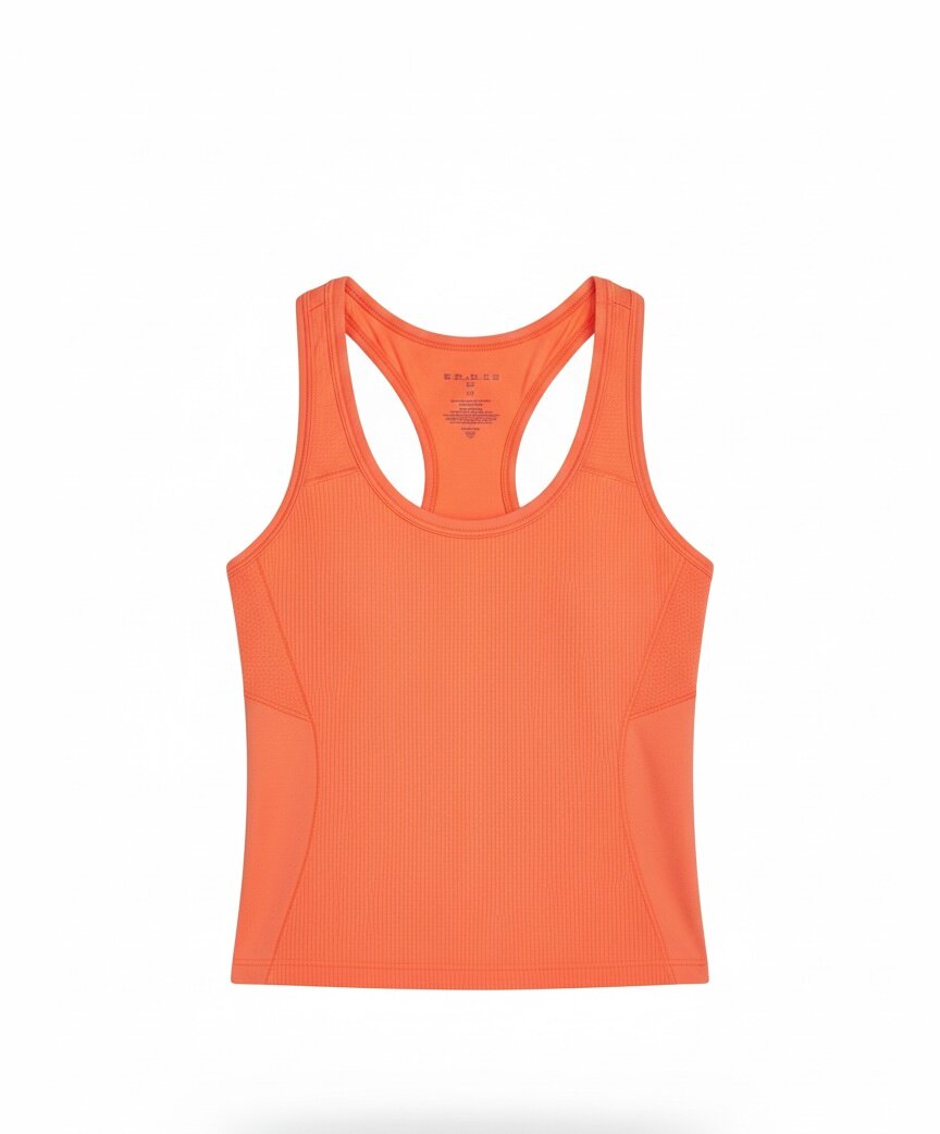 Débardeur de sport pour femme en tissu respirant, idéal pour l'entraînement et le fitness. Design sans manches et dos nageur offrant liberté de mouvement. Parfait pour les séances de gym ou les activités sportives en extérieur.