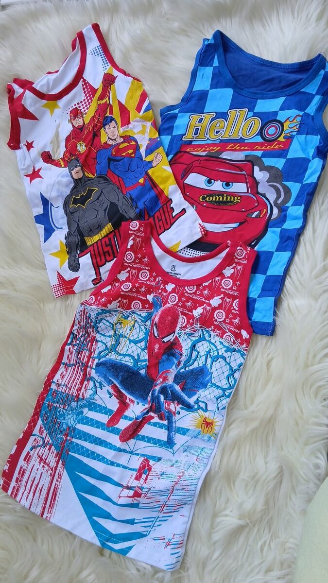 Lot de débardeurs pour enfants avec motifs de super-héros. En coton doux, idéal pour l'été. Parfait pour les jeunes fans de comics.