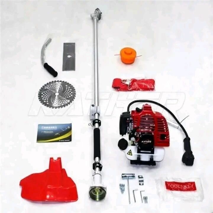 Débroussailleuse thermique puissante pour l'entretien de votre jardin. Livrée avec accessoires : tête de coupe, disque de débroussaillage, rallonge et outils.