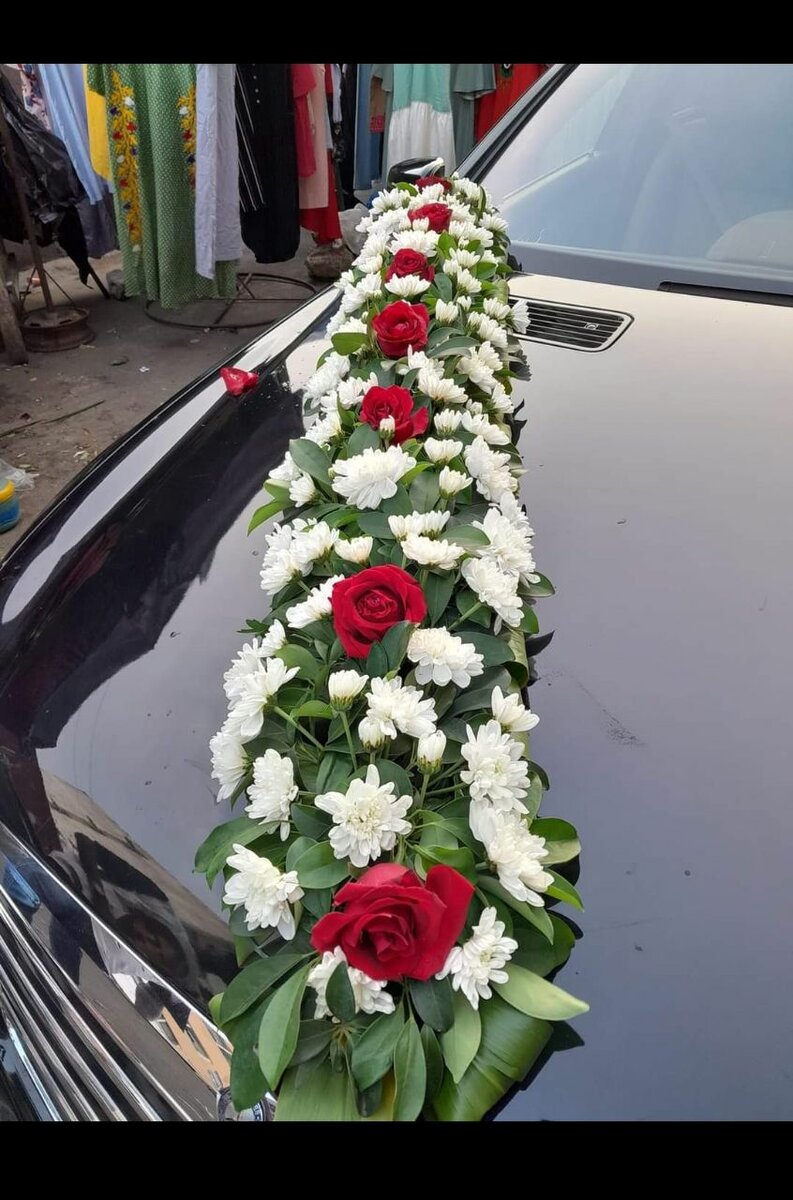 Sublimez votre véhicule avec cette élégante décoration florale. Composée de roses rouges et de fleurs blanches, elle est idéale pour les mariages et événements spéciaux. Facile à poser, elle ajoute une touche romantique et raffinée à votre voiture.