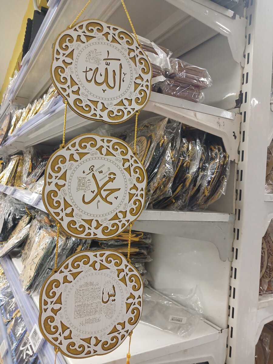 Ajoutez une touche spirituelle et élégante à votre intérieur avec cette décoration murale islamique. Composée de trois médaillons ornés de calligraphies arabes fines, cette pièce est parfaite pour embellir votre salon, bureau ou tout espace sacré. Idéale pour ceux qui recherchent une ambiance paisible et inspirante.