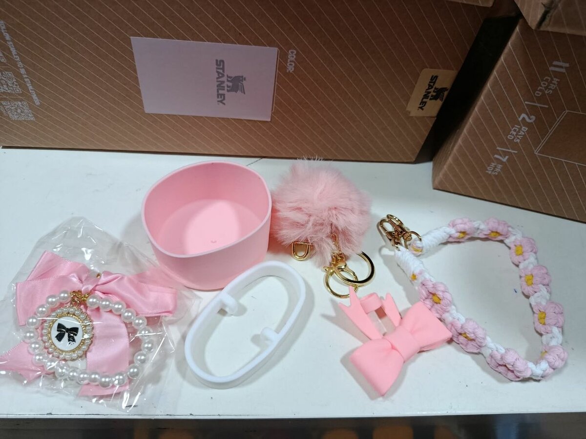 Enhance your accessories with this chic pom pom keychain set. Featuring a pearl bracelet, soft pom pom, and colorful charms, it's perfect for adding style to bags and keys. Ideal gift choice!