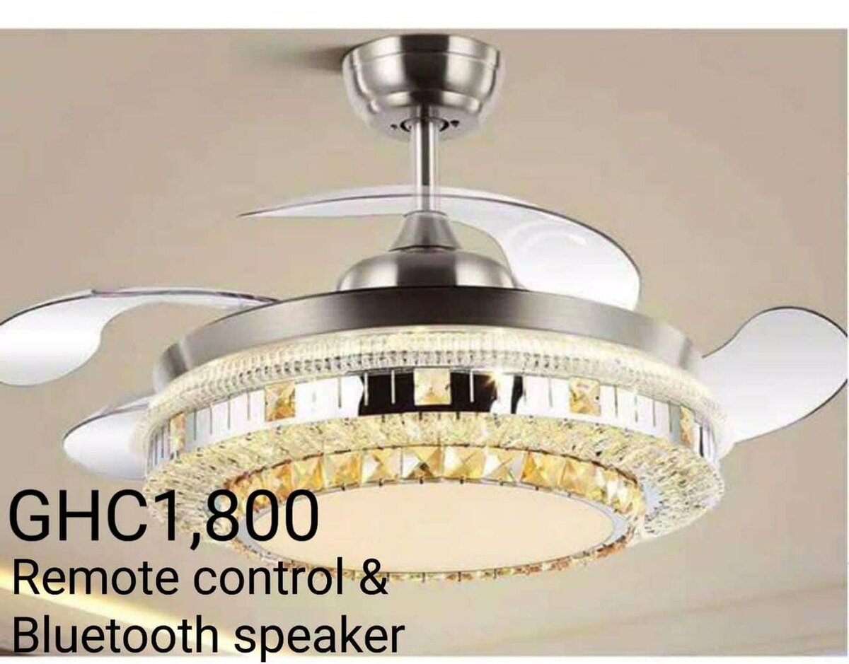 Decorative Chandelier Fanlight With Invisible Blade Available * It has 3 colour LED lights * It has a remote controlled * It includes Bluetooth