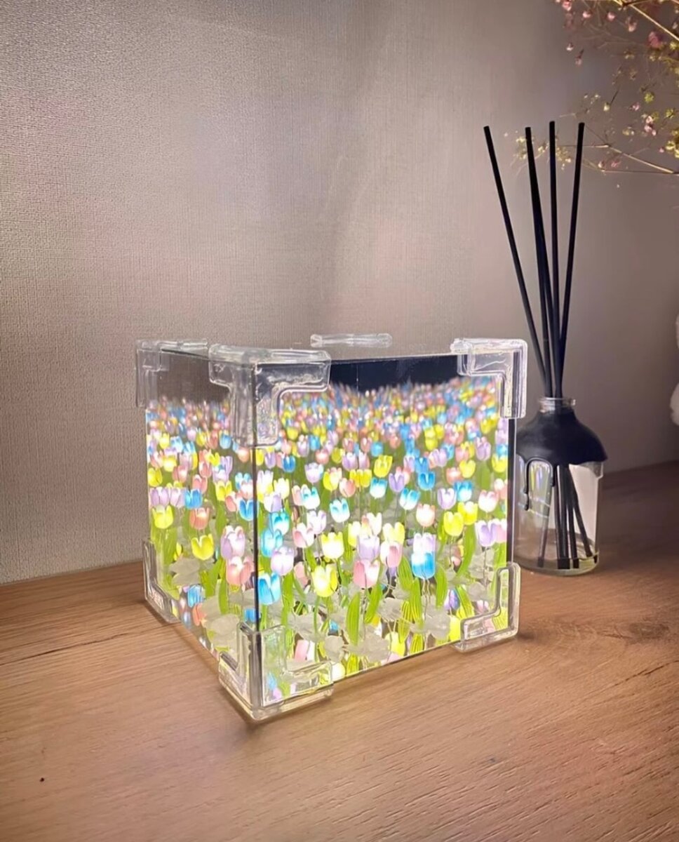 ночник зеркало тюльпаны в кубе абсолютно новый, нужно собирать саоими руками, отличный подарок сделанный с душой