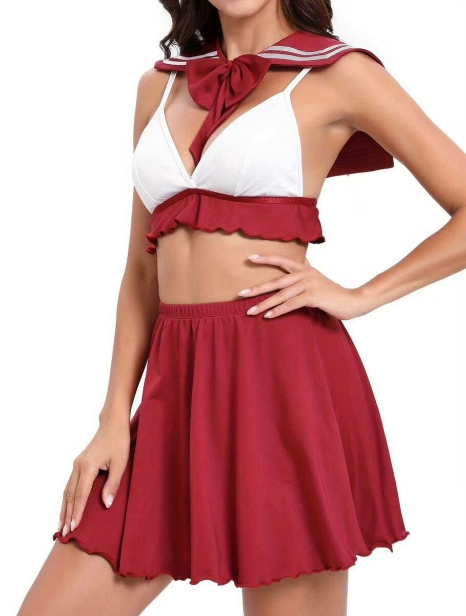 Découvrez ce déguisement de marin rouge pour femme, composé d'un haut blanc et rouge et d'une jupe rouge. Idéal pour les soirées à thème ou les événements costumés.