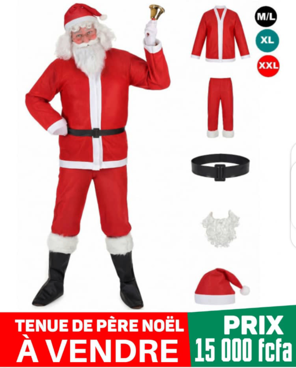 Transformez-vous en Père Noël avec ce costume complet idéal pour les fêtes. Confortable, disponible en plusieurs tailles.