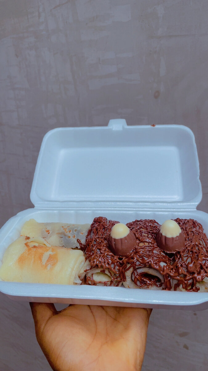 Savourez ces crêpes moelleuses garnies de chocolat fondant et décorées de bonbons crémeux.