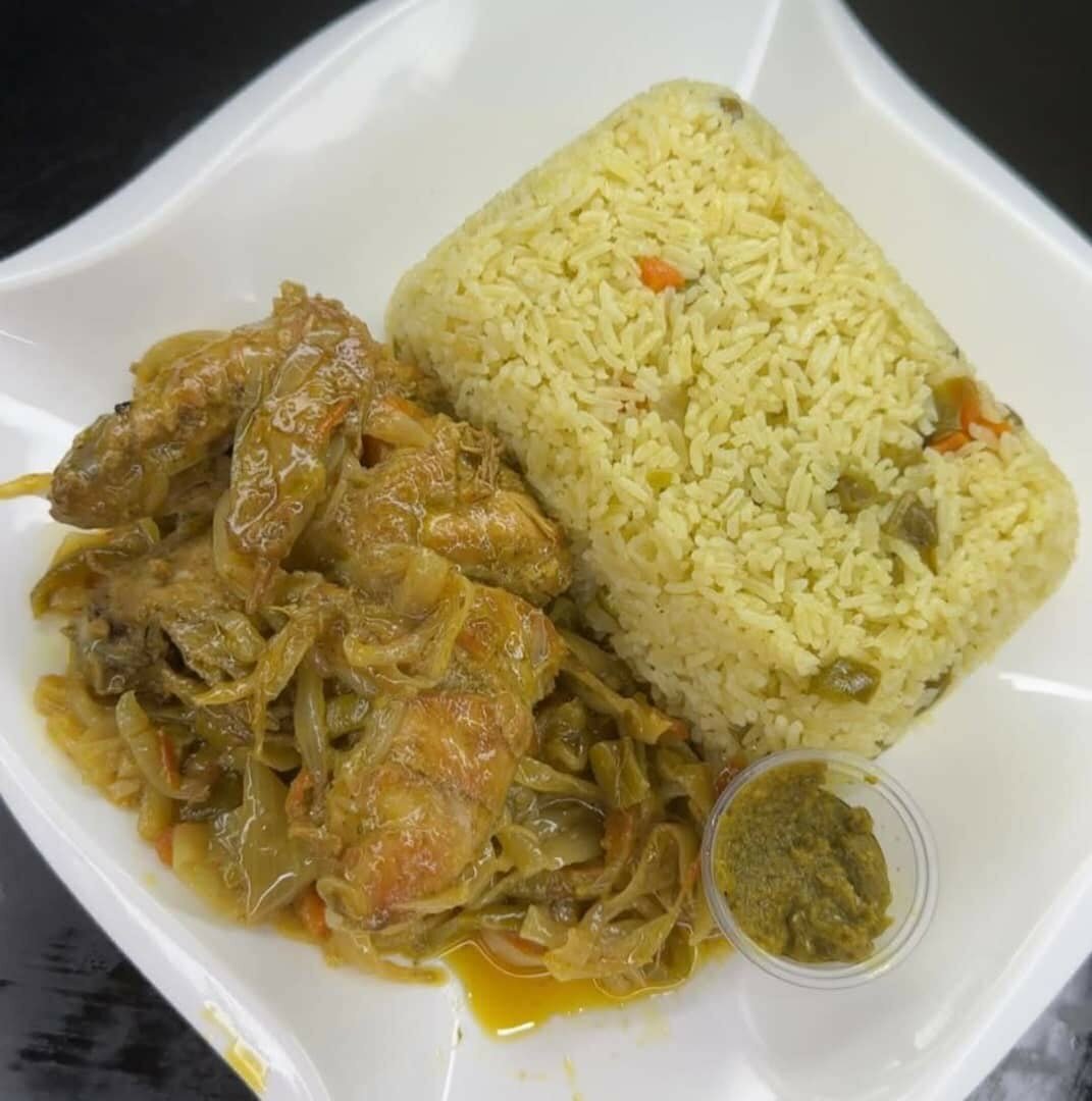 Riz au curry accompagné de délicieux poulet grillé ou du bon tchep fait maison
