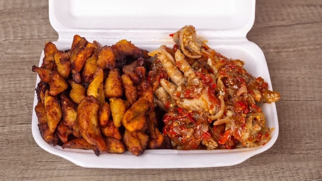 Découvrez notre délice de plantain frit accompagné de Gésier ou de pâte de poulet ou doeufs . Parfait pour un repas savoureux