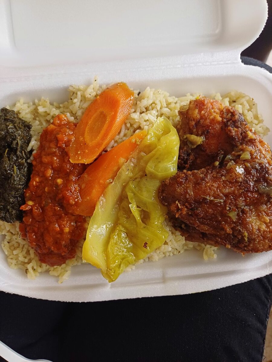 Découvrez notre assortiment de plats africains authentiques comprenant poulet épicé, poisson frit, riz savoureux et frites dorées. Parfait pour une expérience culinaire exotique à la maison.