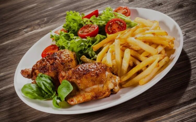 Découvrez notre offre exquise de poulet grillé accompagné de frites dorées ou de plantains frits savoureux. Idéal pour un déjeuner rapide ou un dîner festif, ce plat est complété par des légumes frais pour une touche colorée et croquante. Profitez d'une saveur authentique et irrésistible qui ravira vos papilles!