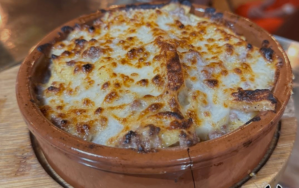 Pasticío gratin marocain a base de frite jambon ou viande, béchamel et fromage
