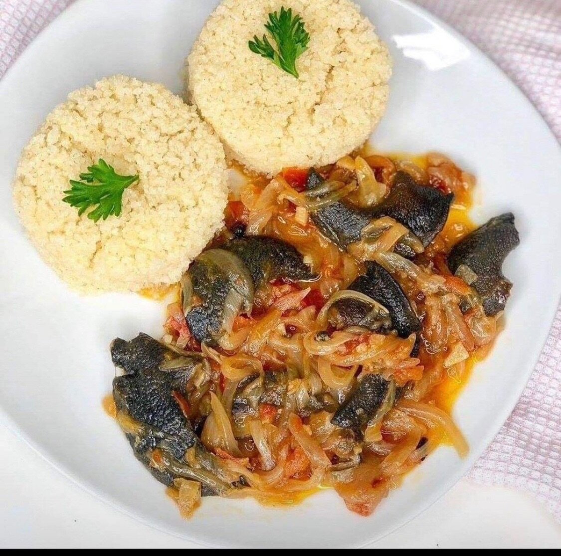 Savourez cette délicieuse assiette de cuisine exotique. Parfait pour les amateurs de saveurs uniques et authentiques, ce plat est composé de semoule légère accompagnée de morceaux savoureux mijotés avec des oignons et des tomates. Idéal pour un dîner spécial ou une occasion festive!