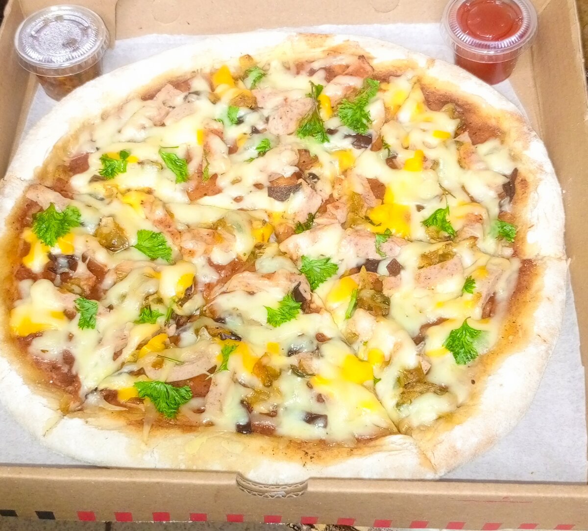 Savourez cette délicieuse pizza au fromage fondant, garnie de légumes frais et d'herbes aromatiques. Parfaite pour une soirée conviviale entre amis ou en famille. Profitez de chaque bouchée riche en saveurs qui vous transportera en Italie. Idéale pour les amateurs de pizza voulant un goût authentique.