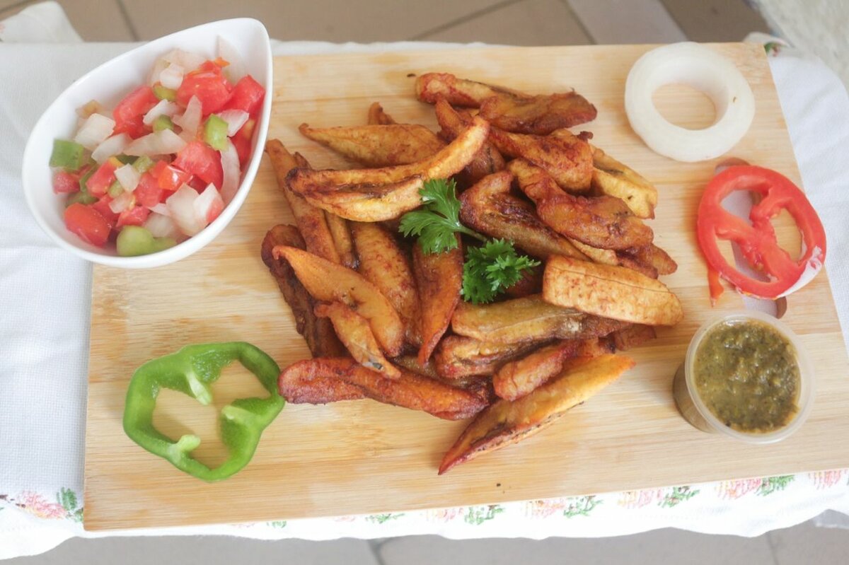Découvrez nos frites de plantain croustillantes, accompagnées de salsa fraîche et d'une sauce pesto savoureuse. Idéales pour un apéritif ou un repas léger, ces frites apportent une touche exotique à votre table. Essayez-les maintenant pour une expérience culinaire unique et délicieuse.