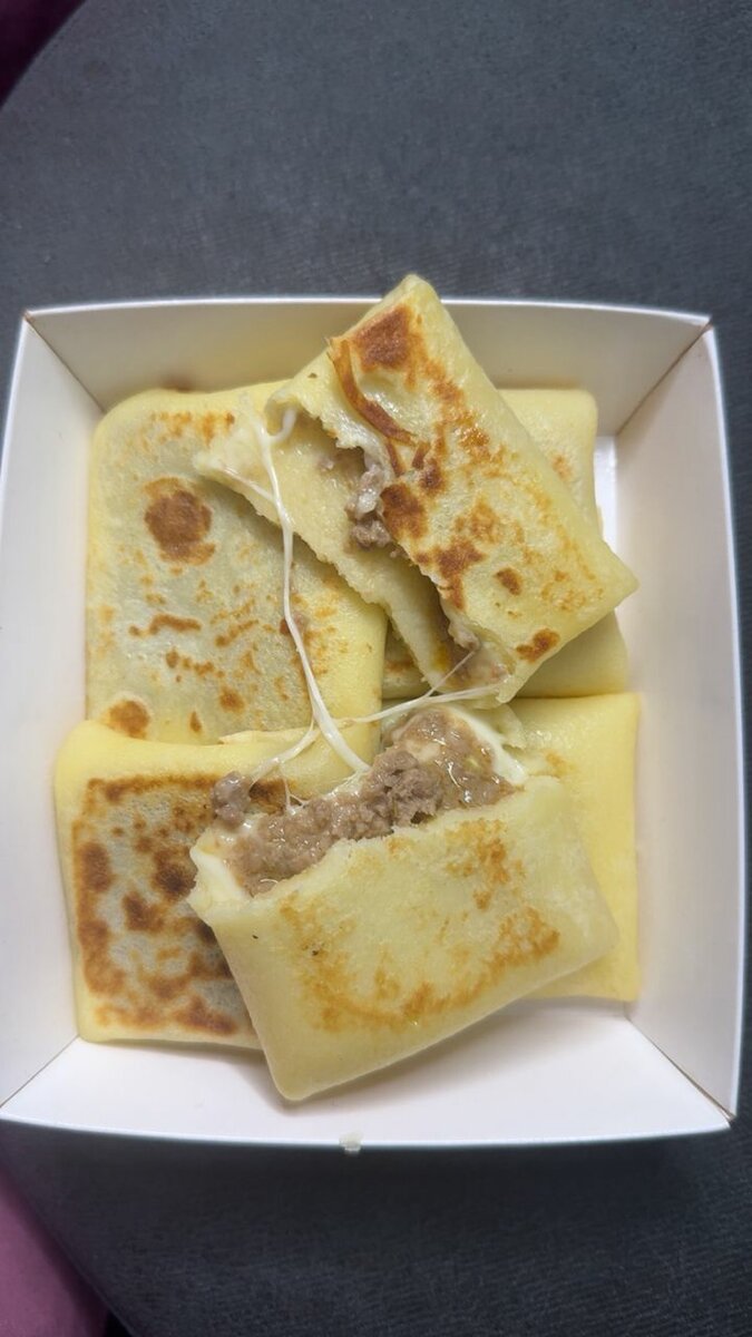 Savourez nos crêpes fraîches, dorées à la perfection et généreusement farcies de viande juteuse. Un régal gourmand à chaque bouchée!