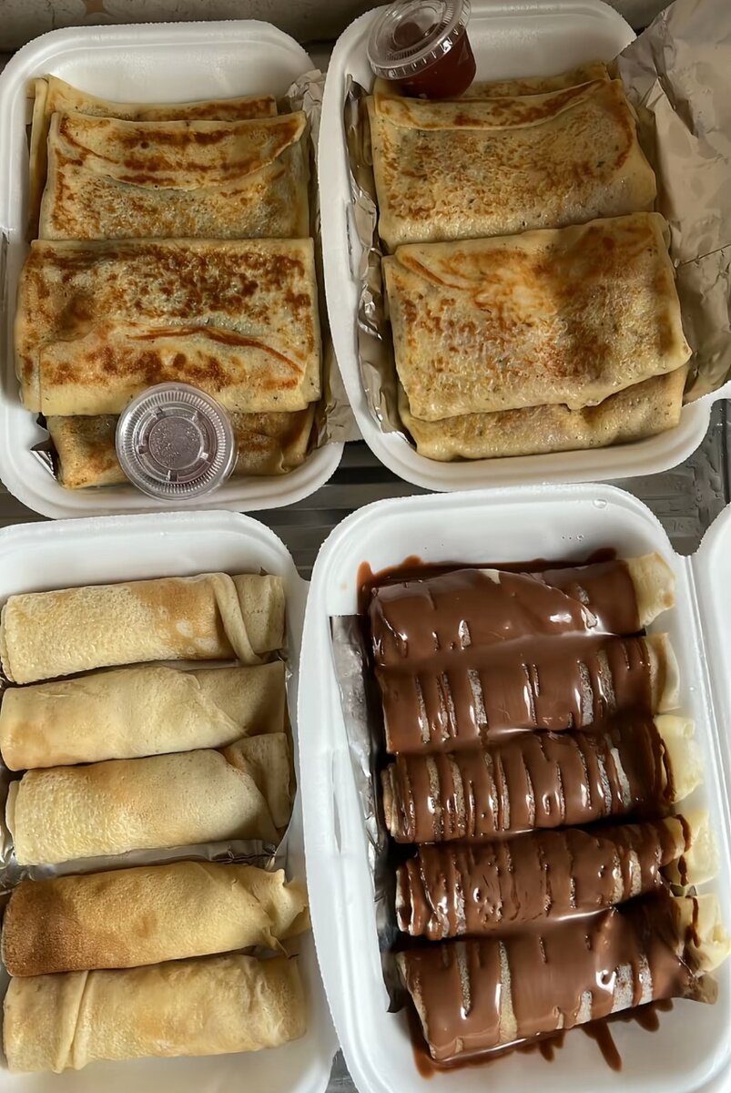 Savourez notre sélection de crêpes délicieuses, généreusement garnies. Adaptées pour le petit-déjeuner, le brunch ou le dessert, ces crêpes sont un régal pour les papilles. Parfaites pour les gourmands et adeptes de sucreries!